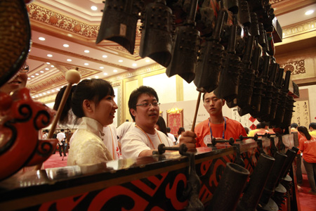 中國臺灣網7月12日消息 今天下午,兩岸萬名青年大型交流主題聯(lián)歡活在人民大會堂盛大舉行,將此次兩岸青年交流活動推向最高潮。 此次活動以“兩岸同心、我們同行”為主題,由17家單位聯(lián)合舉辦,兩岸眾多青年學子齊聚一堂共襄盛舉。海峽兩岸的廣大青年學子滿懷七月驕陽般的熱情,參觀了人民大會堂,觀看了中華非物質文化遺產展示并與現(xiàn)場操作人員進行互動,漢字篆刻、提線木偶、唐卡、編鐘等飽含中國元素的傳統(tǒng)文化讓兩岸青年學子們驚嘆不已。 參觀結束后,一場精彩驚艷的大型文藝聯(lián)歡活動在萬人大禮堂舉行。聯(lián)歡活動由來自大陸央視和臺灣東森電視臺的主持人共同主持,光彩艷麗的唐宋元明清服飾、美輪美奐的千手觀音、神奇莫測的劉謙魔術,別具特色的臺灣原住民舞蹈,讓廣大青年大飽眼福;大陸和臺灣青年歌手聯(lián)袂演出且以閩南語發(fā)聲讓臺灣青年們倍覺親切,雖處異鄉(xiāng)猶感在家;周杰倫、林宥嘉、成龍、韓紅、宋祖英、姚明、王楠、林丹等兩岸明星大腕的加盟出演,更把現(xiàn)場氣氛推向高潮,雷鳴般的掌聲和吶喊聲此起彼伏。 兩岸廣大青年紛紛表示,通過今天下午的活動,對博大精深的中華文化感受頗深,兩岸文化同文同種,兩岸同胞心手相連,今后一定努力為兩岸和平交流多做貢獻. |