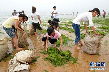 目前,青島市已啟動滸苔處置三級響應(yīng),抽調(diào)各種機(jī)械、車輛828臺(輛),動員人員6000余人,嚴(yán)陣以待,確保及時有效應(yīng)對滸苔災(zāi)害。滸苔屬于綠藻類,因海洋富營養(yǎng)化而肆虐生長,現(xiàn)在國外已經(jīng)把滸苔一類的大型綠藻爆發(fā)稱為“綠潮”,視作和赤潮一樣的海洋災(zāi)害。